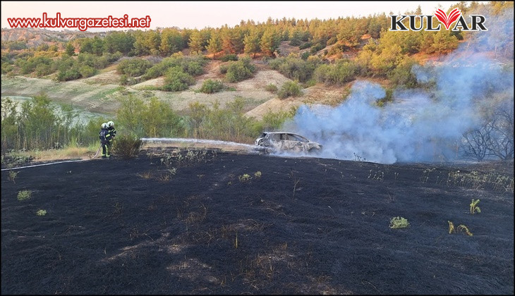 Araç yangınıyla başlayan orman yangını kısa sürede söndürüldü
