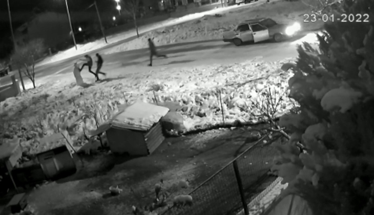 Otomobilden inen 3 genç, hızla koşup kardan adamı uçan tekmeyle yıktı. Arkalarına bile bakmadan olay yerinden kaçan gençler, büyük bir hızla koşarak bölgeden uzaklaştı. Gençlerin kardan adamı yıkıp gittiği o komik anlar ise güvenlik kamerasına yansıdı.(İHA)