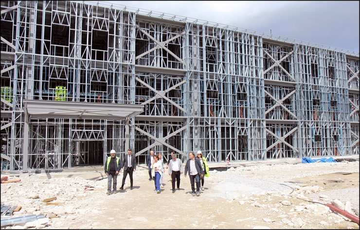Kamu Hastaneleri Hizmetleri Başkan ve Başkan Yardımcısı, Denizli Devlet Hastanesi Yönetimi ve inşaat firma yetkilileri ile birlikte Merkezefendi İlçesi Karahasanlı Mahallesi'nde yaklaşık 435 bin metrekare alan üzerine inşa edilen 1000 yataklı Denizli Şehir Hastanesi ve 500 yataklı acil durum hastanesi inşaatında yerinde değerlendirmelerde bulunan İl Sağlık Müdürü Uz. Dr. Berna Öztürk, acil durum hastanesi inşaatının hızla devam ettiğini söyledi.