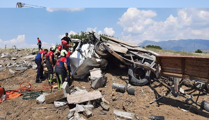 Denizli’de kaldırım taşı yüklü tırın taklalar atarak şarampole yuvarlanması sonucu hurdaya döndüğü kazada sürücü 3 saatlik çalışmanın ardından yaralı olarak sıkıştığı yerden kurtarıldı.