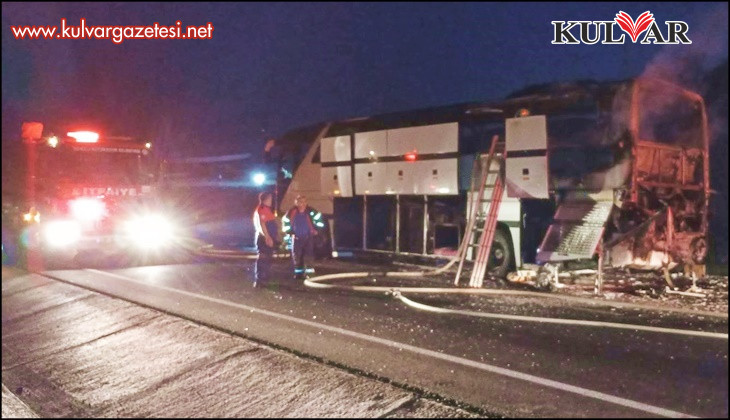 İşçileri bıraktıktan sonra alev alan işçi servisi küle döndü