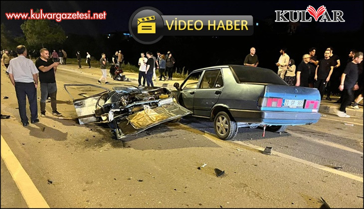 İki otomobilin karıştığı kazada otomobillerden biri ikiye bölündü