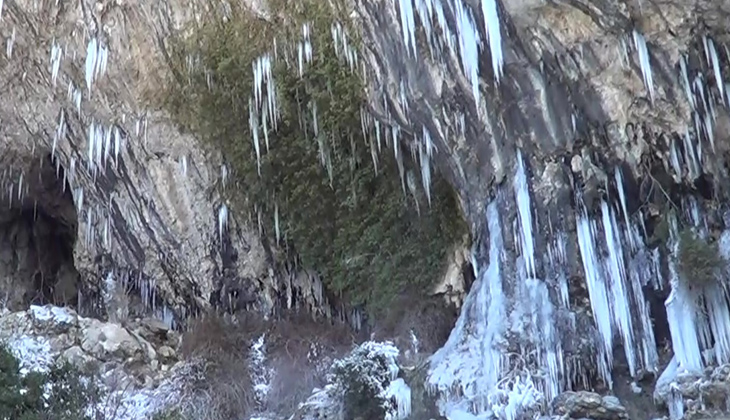 Denizli’de Mart ayında yaşanan aşırı soğuklar, 1400 rakımdaki Zeytin Yaylası Şelalesini dondurdu.