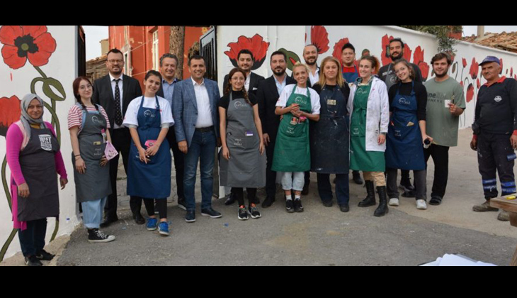 Pamukkale Üniversitesi Resim-İş Eğitimi öğrencileri Babadağ sokaklarını ilçenin kültürel mirası olan kanaviçe desenleriyle boyadı.