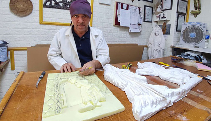 Denizli’de ressam heykeltıraş Adnan Doğan, 10 yıldan bu yana kabartma heykel rölyef çalışmalarını kendi hazırladığı modelleme kalıplarıyla yapıyor.